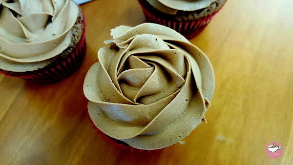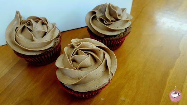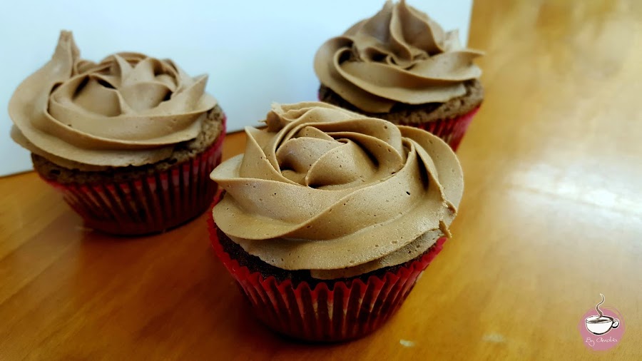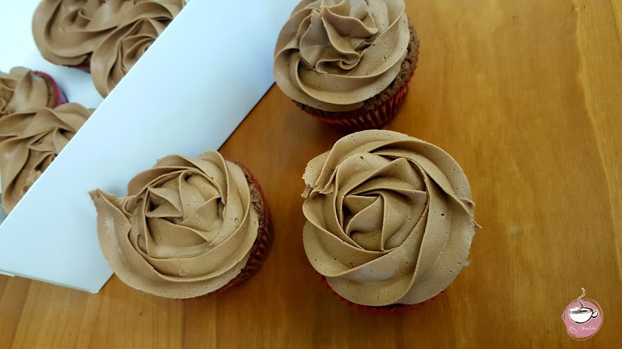 Una vez fríos del todo los cupcakes los decoramos con la buttercream. Ponemos la masa en una manga pastelera y decoramos. Yo utilicé la boquilla 1M de Wilton.
