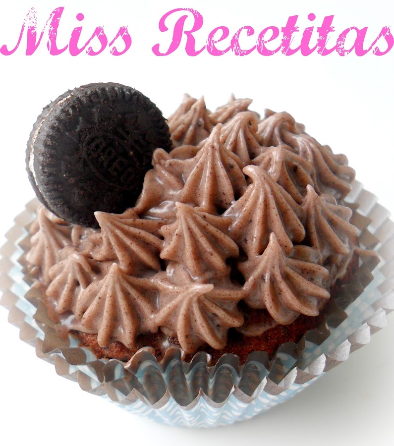 Preparamos el frosting, mezclamos el queso junto a la mantequilla hasta que estos dos ingredientes estén bien integrados y mezclados, añadimos pues el azúcar y las oreo en polvo previamente tamizadas y batimos bien. Si veis que esta masa os queda muy cremosa para la manga pastelera como me paso a mi añadimos algo mas de azúcar glass para espesarla. Me ha encantado este frosting mucho mas suave que la buttercream por lo que la recomiendo especialmente.