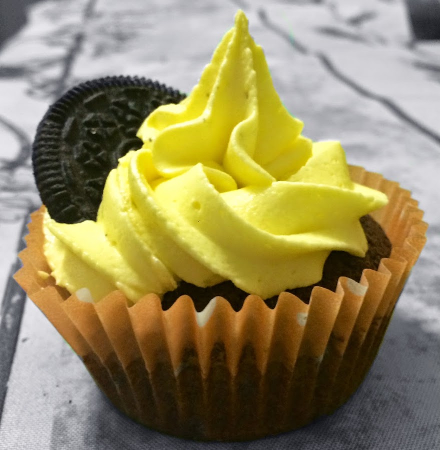 Continuaremos batiendo la mezcla hasta que ésta pierda la textura del azúcar y quede ligera. Y ya tenemos nuestra rica buttercream!Cuando los pastelitos estén fríos, con la ayuda de una manga pastelera, los decoraremos. Ahora os enseñaré una manera muy original para hacerlo, solo necesitamos 12 galletas oreo (sin la crema) y buen pulso.