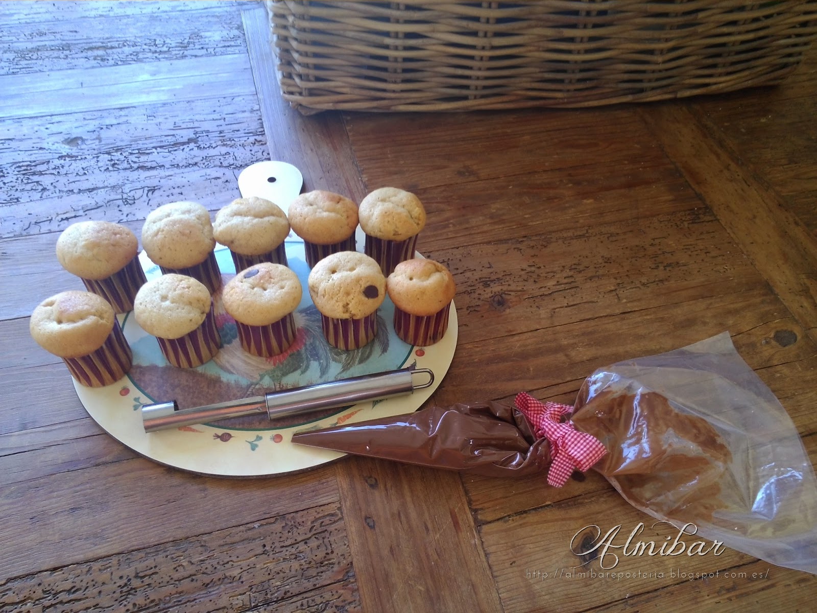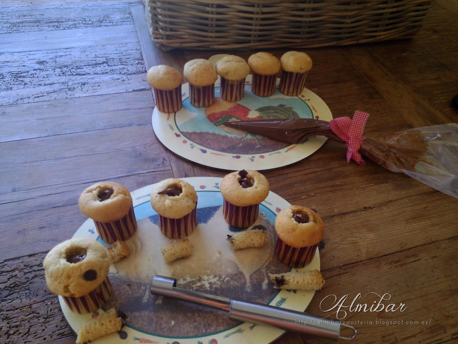 ...le haces un agujero en medio de la cupcake y así puedes rellenarlas de nutella...