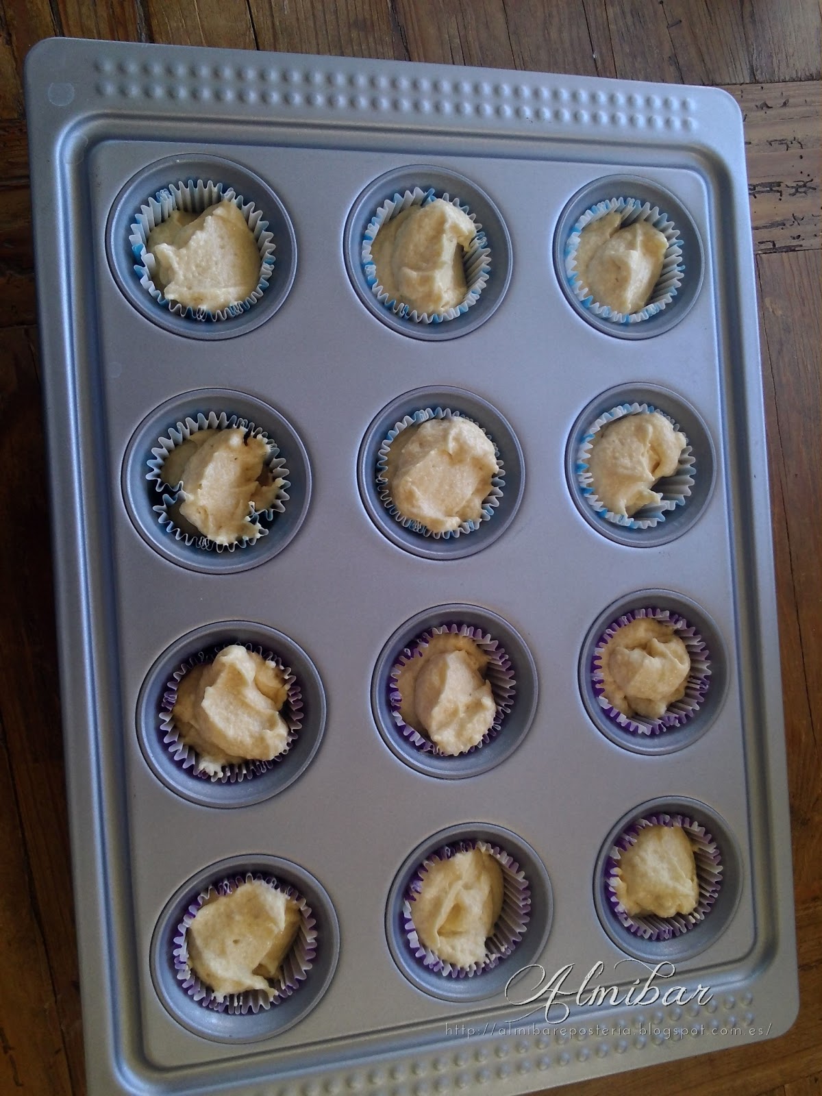 ...ayúdate de una cuchara de helado para que todas las cupcakes tengan la misma cantidad de masa... ...las colocas en un molde para magdalenas...