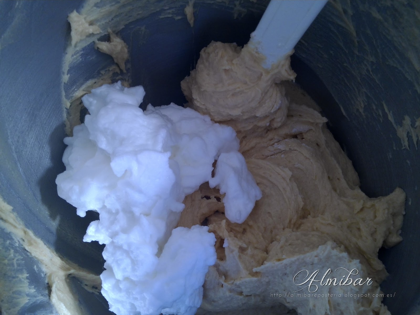 ...poco a poco... ...incorporas las claras a punto de nieve a la masa con movimientos envolventes...