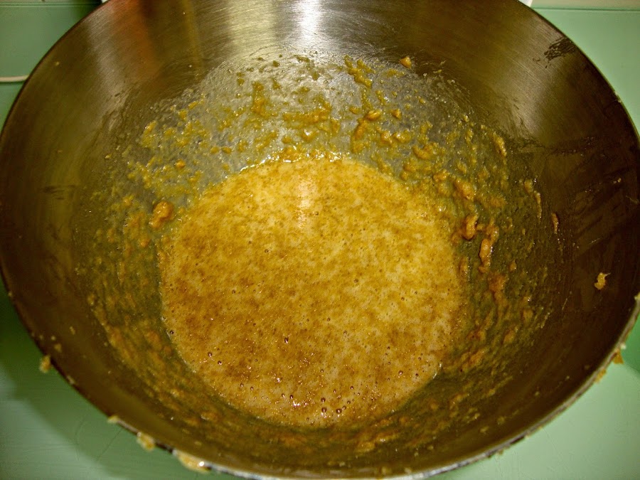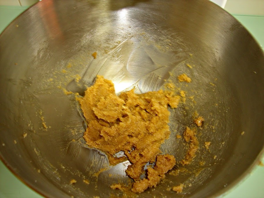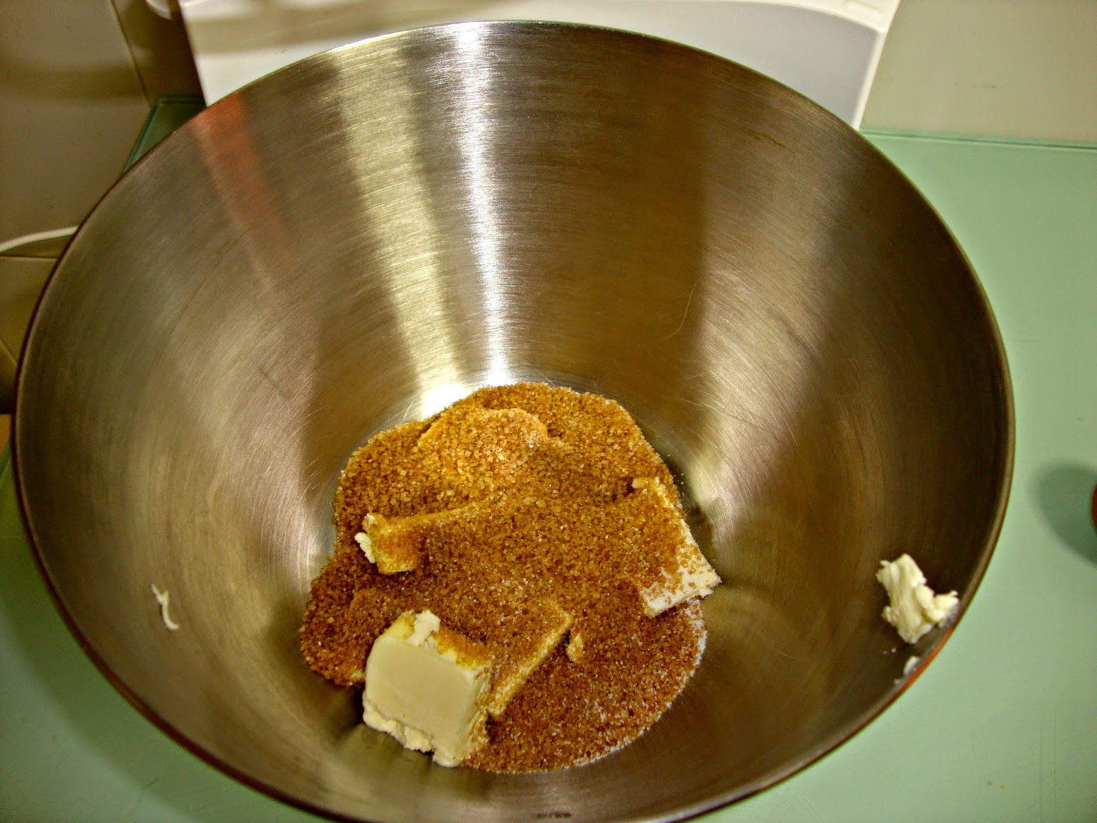 En un bol ponemos la mantequilla con el azúcar moreno y el azúcar vainillado y batimos hasta que el azúcar esté integrado.