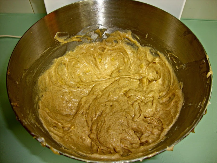 Añadimos los huevos uno a uno hasta que se mezclen bien. Vamos añadiendo alternativamente la mezcla de harina y el plátano y batiendo para que la mezcla sea homogénea.