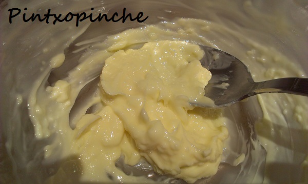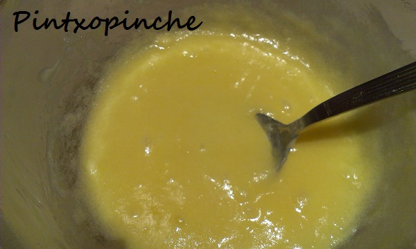 Mezclamos el azúcar con la mantequilla y una vez bien integrado añadimos el huevo y hacemos una pasta homogénea.