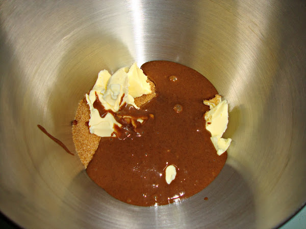 En un bol ponemos la mantequilla con el azúcar y la crema de speculoos y batimos hasta que este todo integrado.
