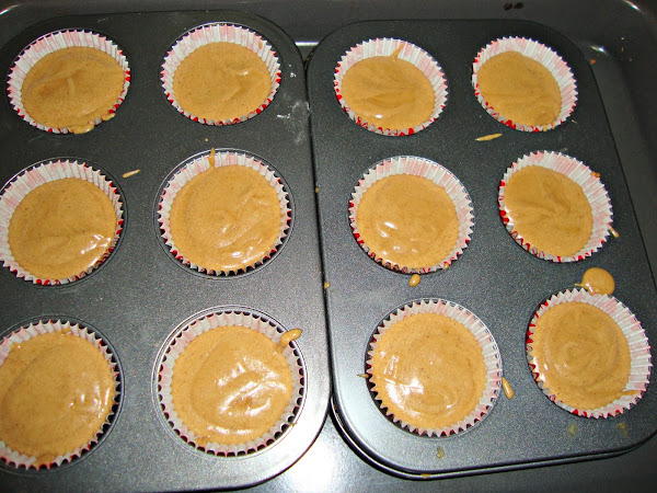 Ponemos la mezcla en las cápsulas de magdalenas y horneamos durante 20 minutos en horno caliente a 180º C.
