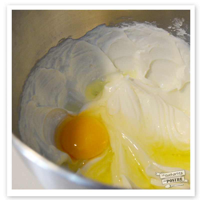 4. Añade los huevos de uno en uno y mézclalos.