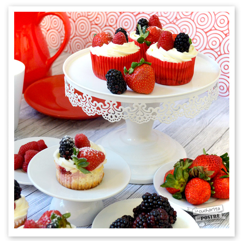 Esta semana hemos querido fusionar lo mejor de los cupcakes con lo mejor del cheesecake y el resultado han sido estos CUPCAKES DE CHEESECAKE CON FRUTOS ROJOS. Unos cupcakes llenos de color, de vida, de fruta, de aroma y de sabor. Cuando te comas uno, querrás que se pare el tiempo por completo y que ese momento no termine nunca. ¿Te quedas conmigo a descubrir el secreto de este postre?