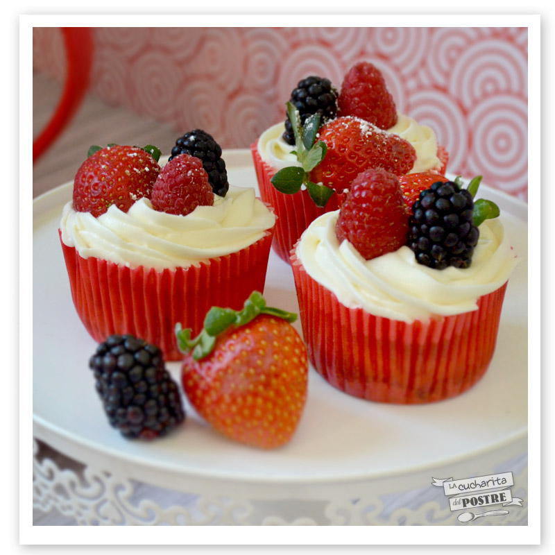 CONSEJO: estos cupcakes contienen queso crema tanto en la masa como en el frosting, así que es muy importante que los conserves en el frigorífico y los consumas en un margen de 2-3 días. También te recomiendo decorarlos con las frutas justo en el momento antes de servir para que no se pongan mustias y blandas al estar en contacto con la crema.
