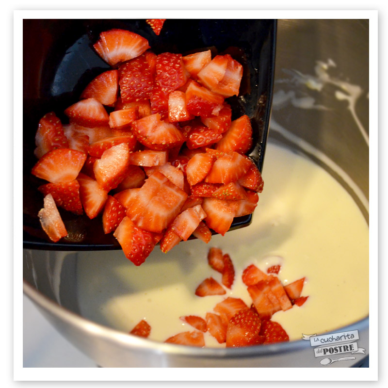 7. Por último, añade las fresas cortadas en trocitos.