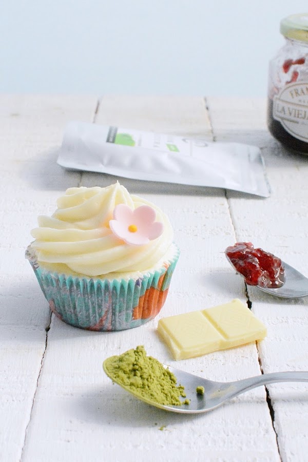 Con un descorazonador de manzanas hacemos un huequecito en los cupcakes que rellenamos con mermelada de frambuesa. Tapamos con la tapita que habíamos retirado.