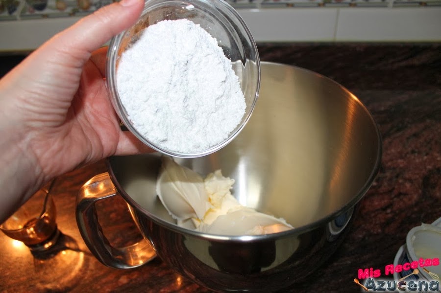 La mantequilla la tendremos a temperatura ambiente, al igual que el resto de los ingredientes menos la nata (crema de leche) que la necesitamos fría..