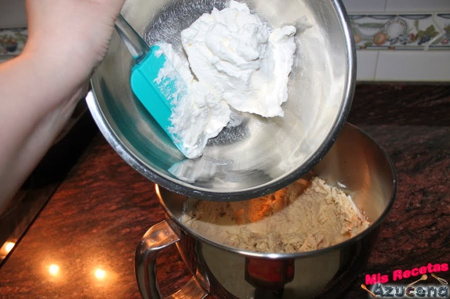 Una vez listo añadiremos la nata (crema de leche) y con ayuda de una lengua mezclaremos con movimientos envolventes.