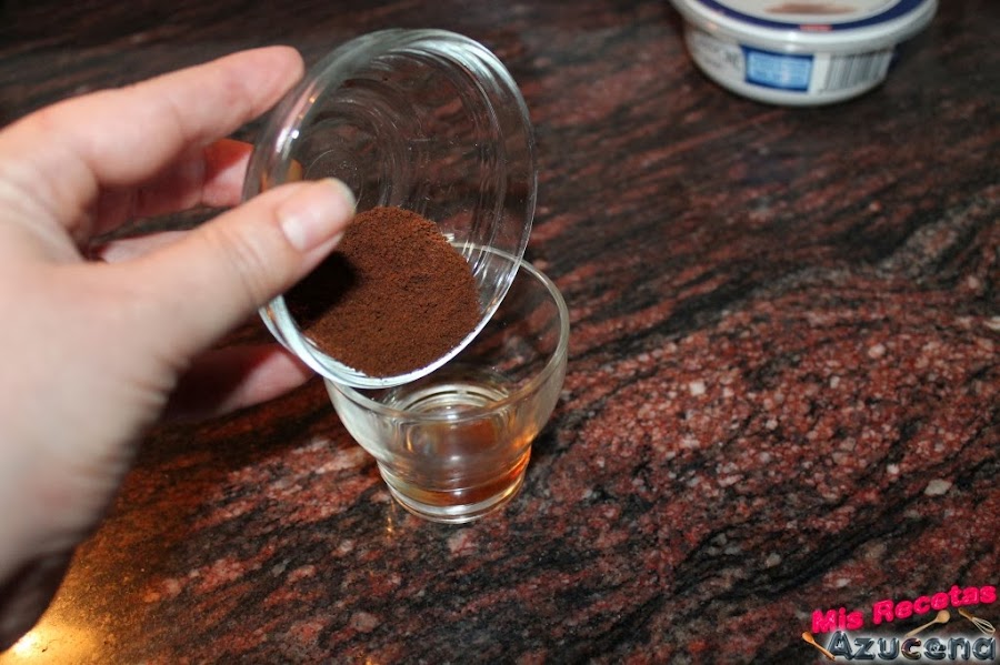 En un vaso pondremos el agua y diluiremos el café, reservamos.