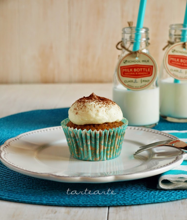 Si había visto alguna receta de estos cupcakes, pero ninguna me había convencido del todo. Al final opte por hacer una base con una receta de cupcakes de vainilla, cogí esta receta de Alma que hizo en Cupcakes Maniacs y la crema si que use la que puso ella en la receta de su libro. La verdad que me falto el punto de amaretto que en ese momento no tenía.