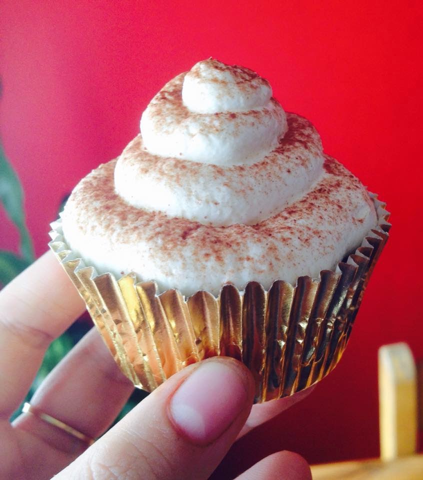 Montar la nata (crema de leche) con el azúcar, una vez montada agregar el queso mascarpone, con movimientos envolventes evitando que la nata (crema de leche) se baje. poner el frosting en la manga pastelera con boquilla redonda y cubrir el cupcake,