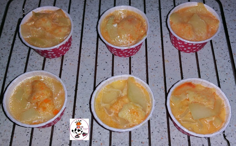 Metemos al horno unos 15-20min a unos 220º (depende del horno). Sacamos y dejamos enfriar. Antes de servir ponemos una munchito "Pizza" encima del cupcakes de tortilla y listo para comer.