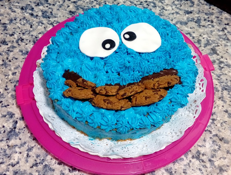 Para la boca dejamos un espacio sin poner chantilli y se cubre con el chocolate con leche derretido, encima se ponen las cookies troceadas.