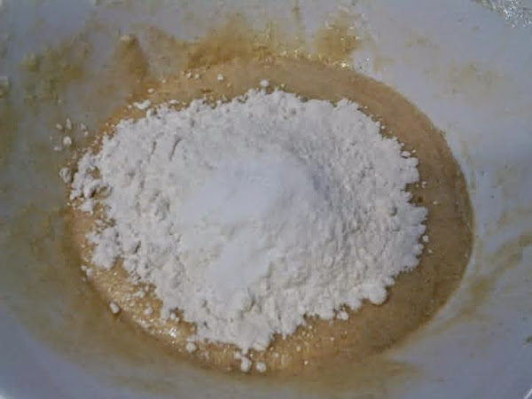 Mezclamos todo hasta integrar bien los ingredientes e incorporamos la harina tamizada con la levadura.