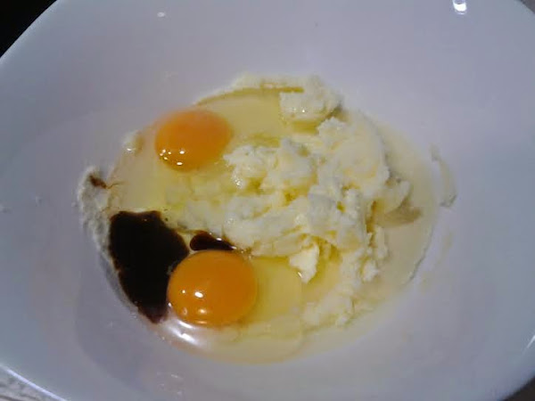 Cuando esté bien integrada añadimos los huevos y la vainilla.