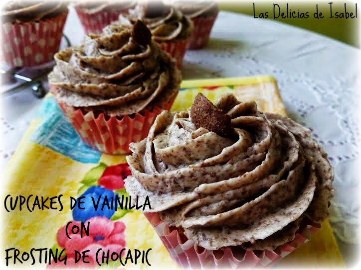 Mientras se hornean los cupcakes preparamos el frosting. Mezclamos el queso con el azúcar glas tamizada. Incorporamos la mantequilla y por ultimo los chocapic previamente pulverizados con la picadora. Mezclamos bien, metemos en una manga con boquilla rizada y reservamos en la nevera.