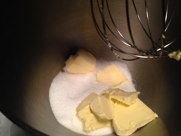 Ponemos la mantequilla que debe estar a temperatura ambiente en la batidora con las barrillas y batimos con el azúcar un par de minutos a velocidad media hasta que la mezcla se torne blanquecina.