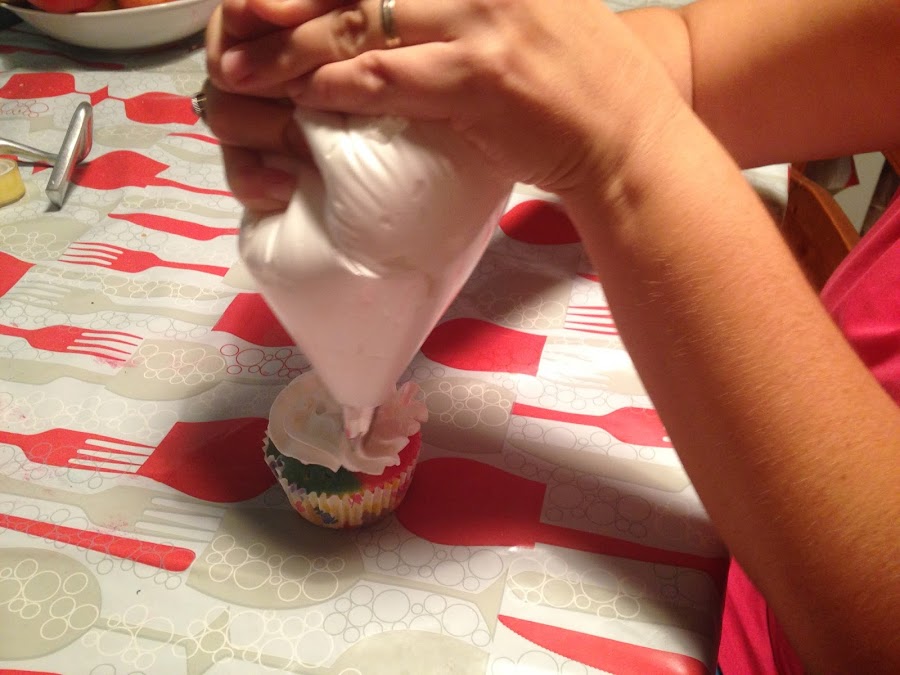 Cuando los cupcakes estén fríos ya solo nos queda rellenar una manga pastelera y decorarlos a nuestro gusto.