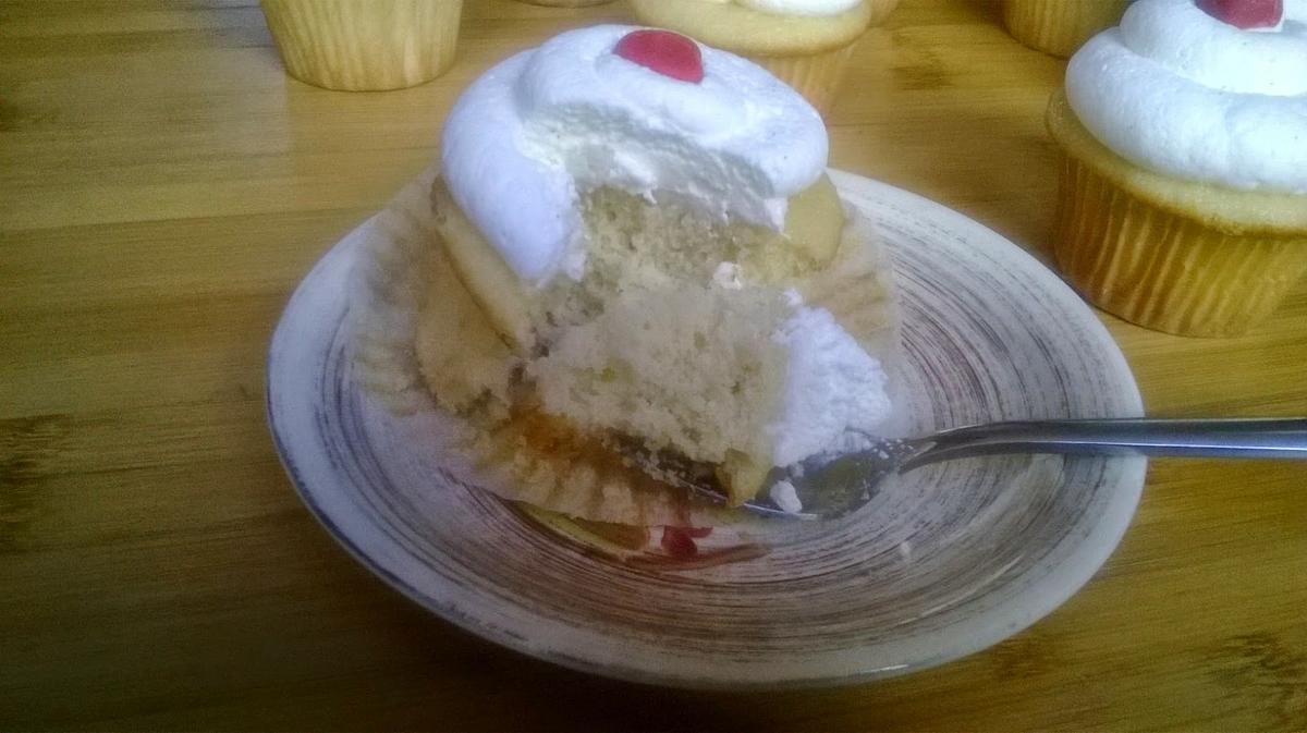 El cupcake no es muy dulce, tampoco la crema ya que podemos ajustar la cantidad de azúcar. La vaina de vainilla le ha dado un estupendo sabor a la crema.