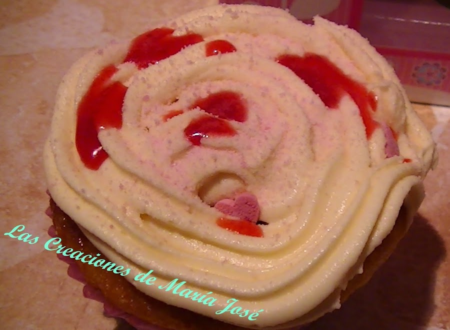 Precalentamos el horno y preparamos la bandeja para cupcakes con las capsulas de papel. Mezclamos todos lo ingredientes del bizcocho y batimos muy bien. Repartimos la mezcla en las cápsulas y horneamos 22 - 25 minutos.