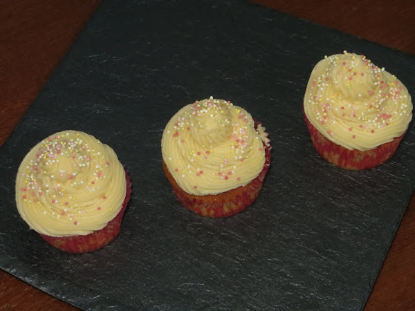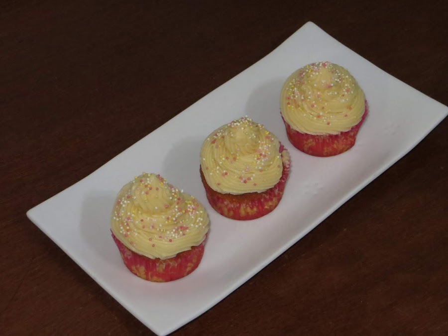 Sacamos los cupcake del horno dejamos enfriar en una rejilla y luego con la manga pastelera vamos adornándolos con el buttercream de vainilla, echamos una bolitas pequeñas para darles un poco más de brillo y ya están listos para degustar. La verdad es que es un postre muy llamativo, aunque a mí me resulta un poco empalagoso, pero si tenéis invitados en casa seguro que les encantará sobre todo su presentación.