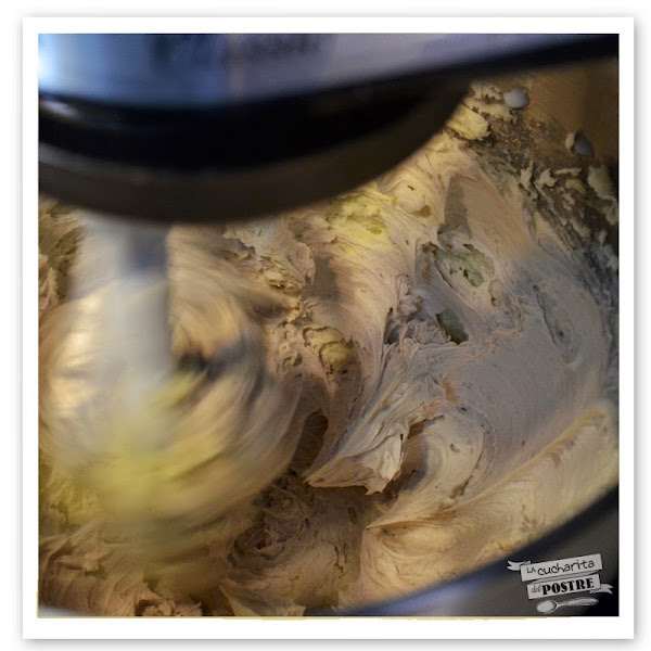 2. Tamiza el azúcar glasé por encima y sigue batiendo hasta tener una textura parecida a un helado.