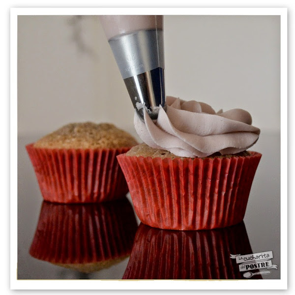1. Usando una manga y una boquilla (yo he usado la 2D de Wilton) haz rosetones encima de los cupcakes.