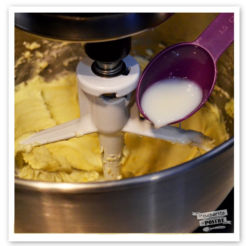 4. Añade las cucharadas de leche poco a poco y sigue batiendo a velocidad alta.
