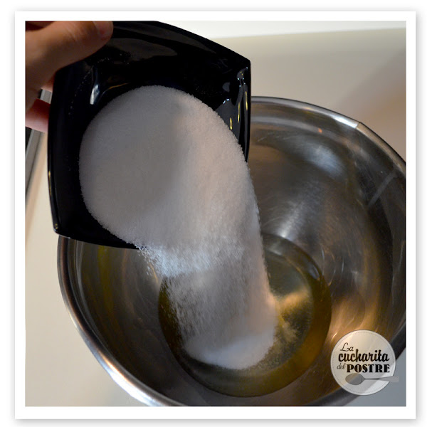 1. Mezcla el aceite de girasol (también puedes usar de oliva suave) con el azúcar en un bol.