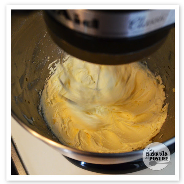 1. Bate la mantequilla, que debe de estar blandita, con el globo de la batidora hasta que quede cremosa y de color casi blanco.