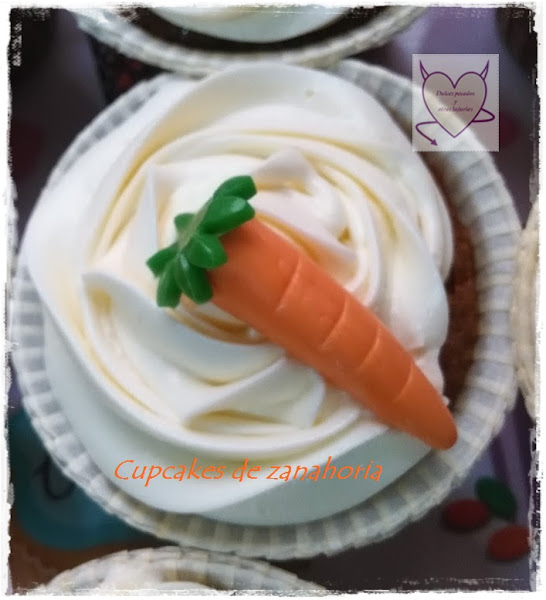Cuando las cupcakes se hayan enfriado completamente las decoraremos con la crema de queso y con algún detalle si te apetece. Yo les hice unas zanahorias pequeñitas con fondant.