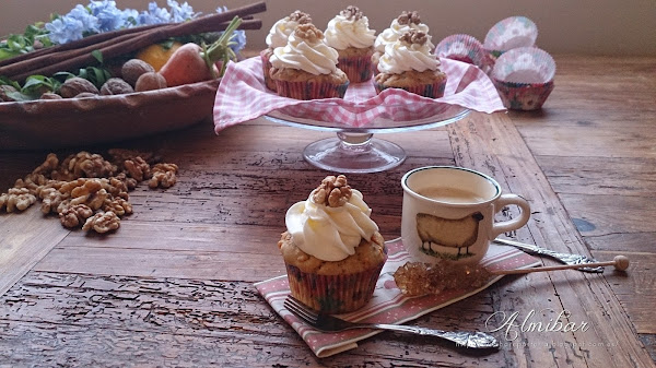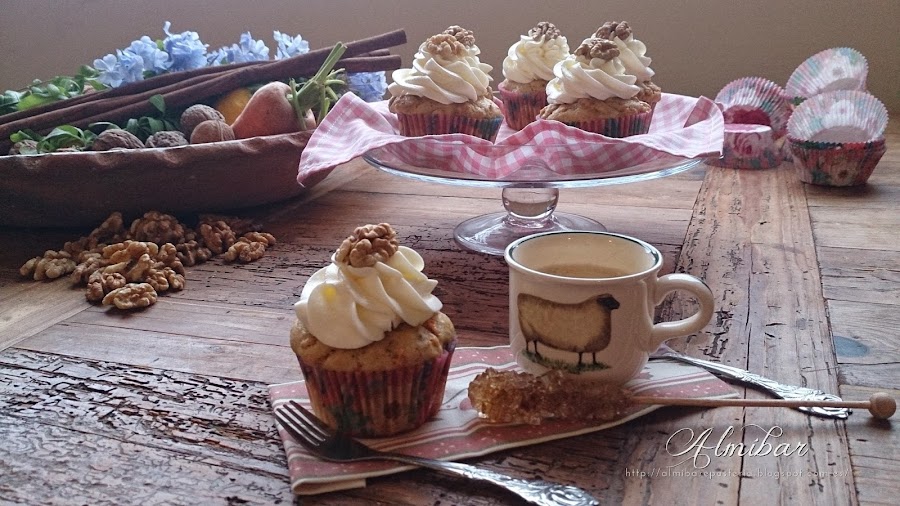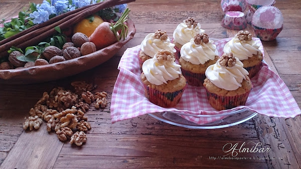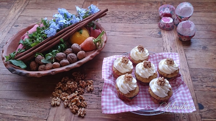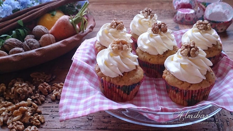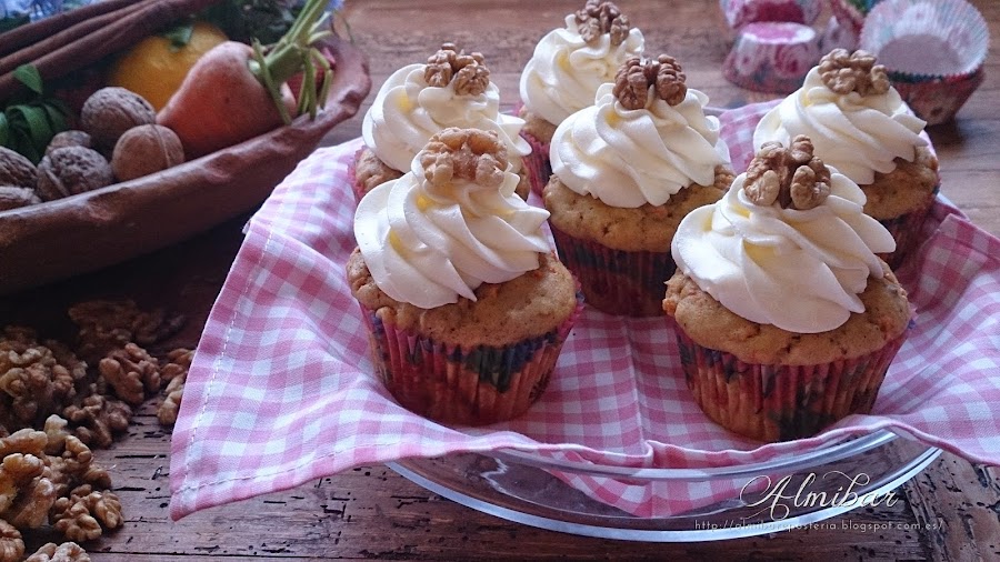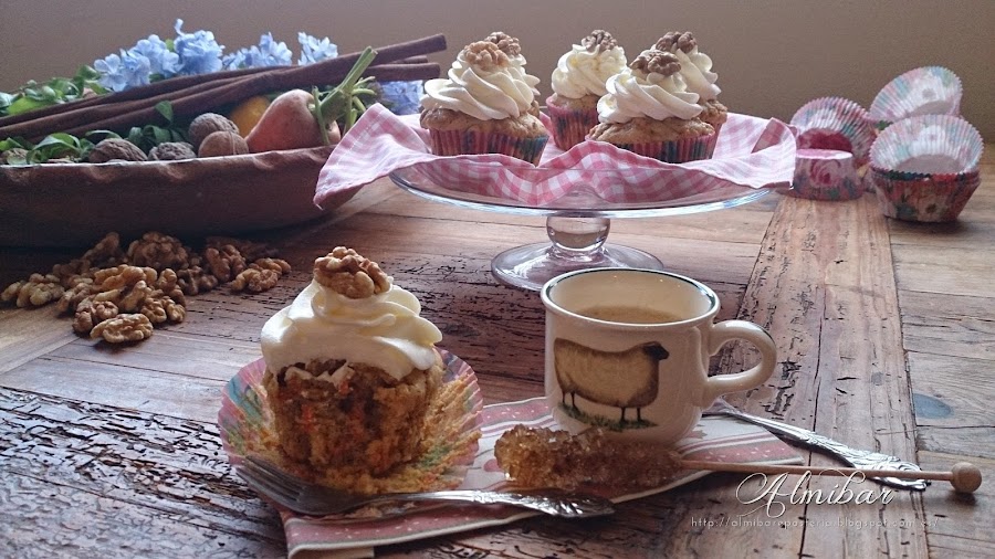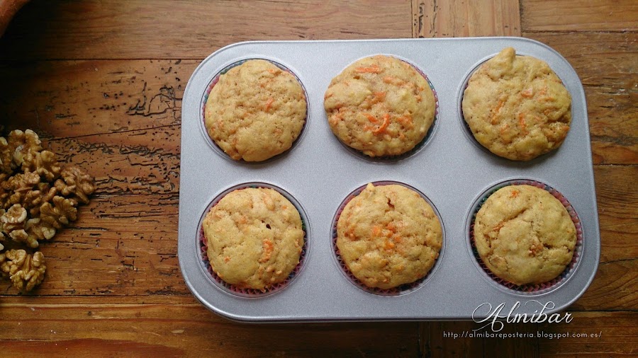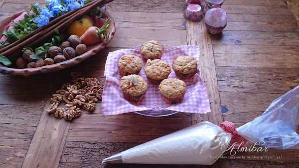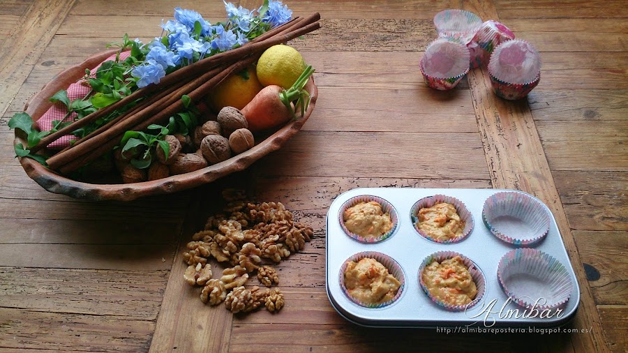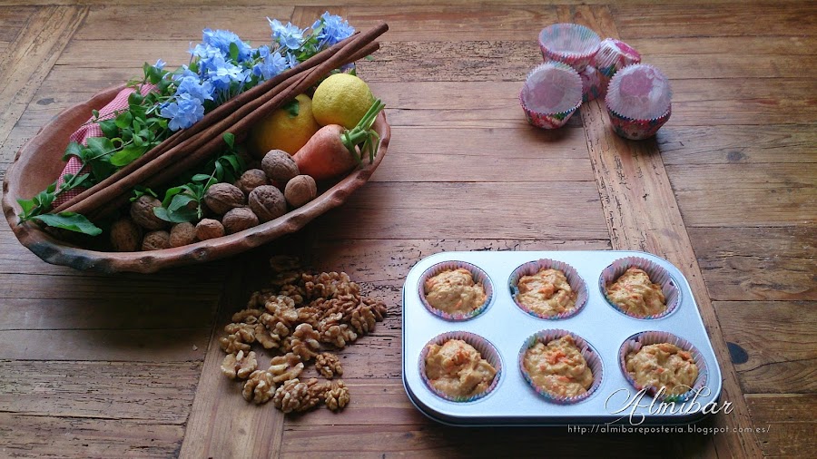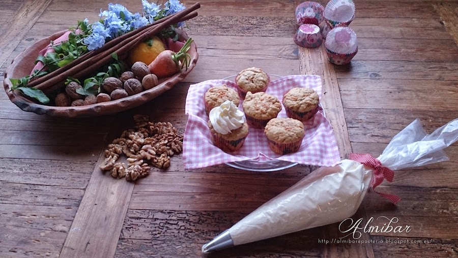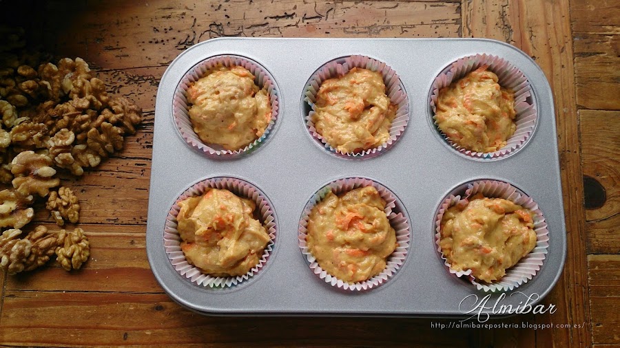 ...deliciosos cupcakes con sabor a zanahoria y nueces troceadas...