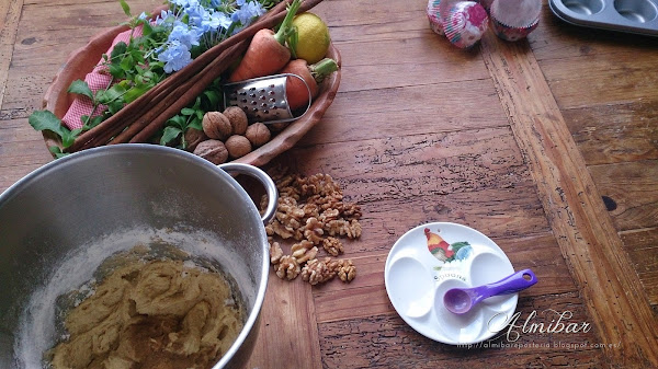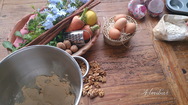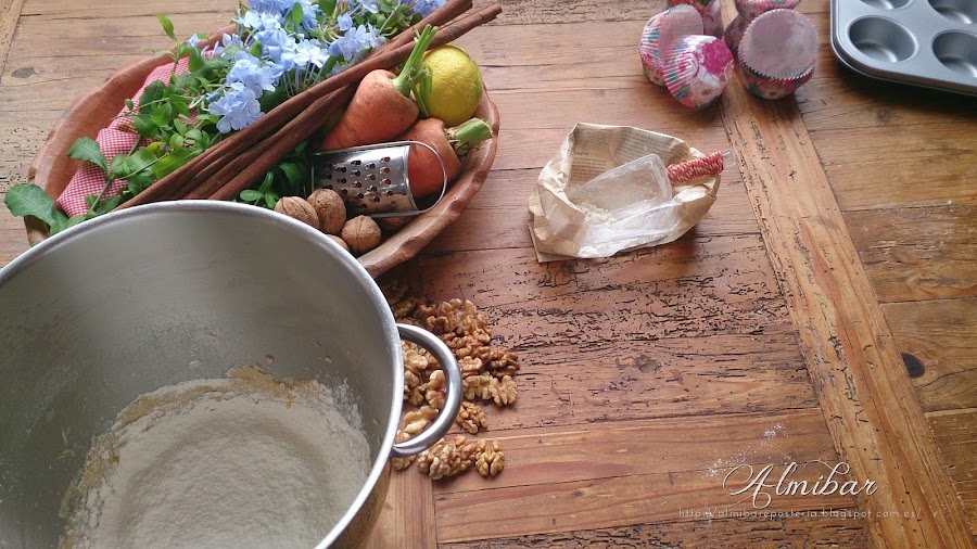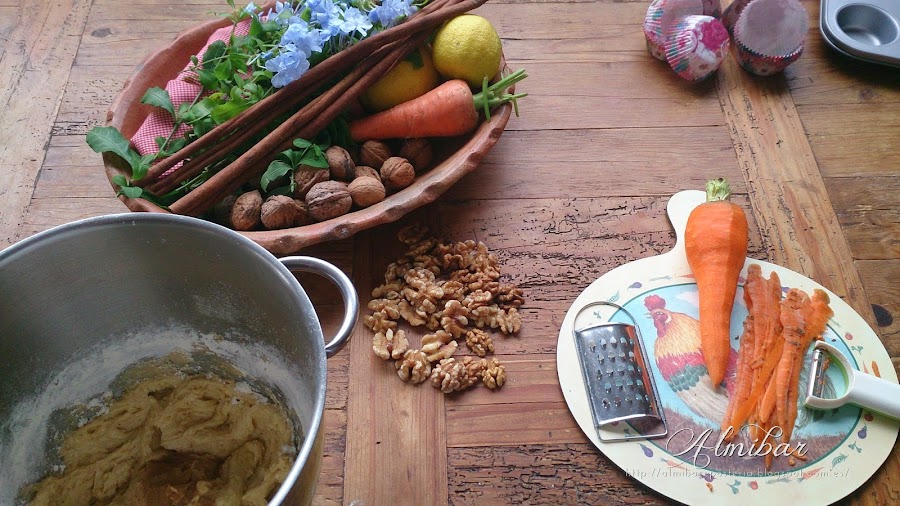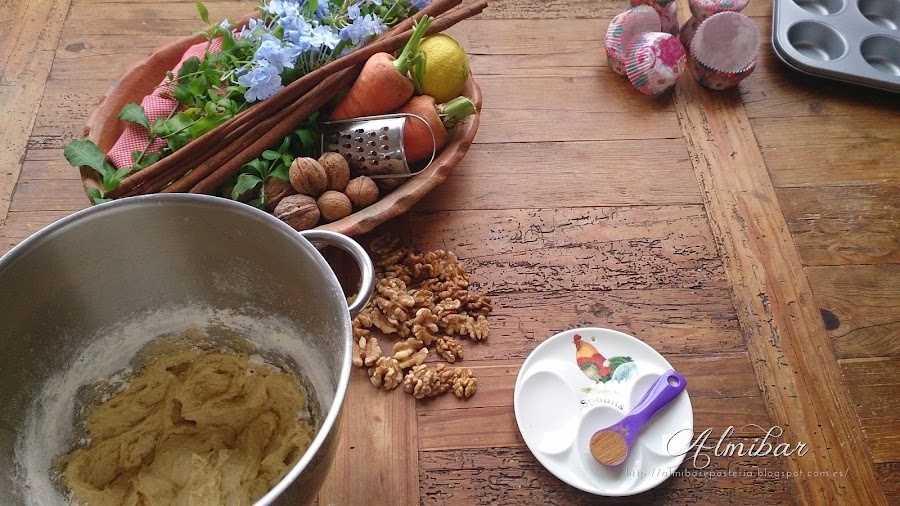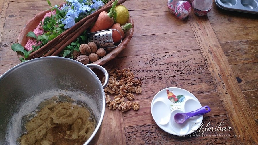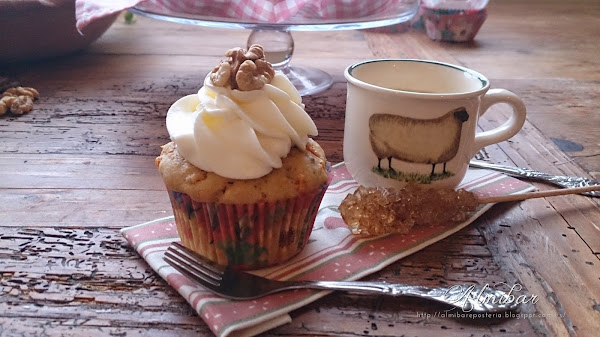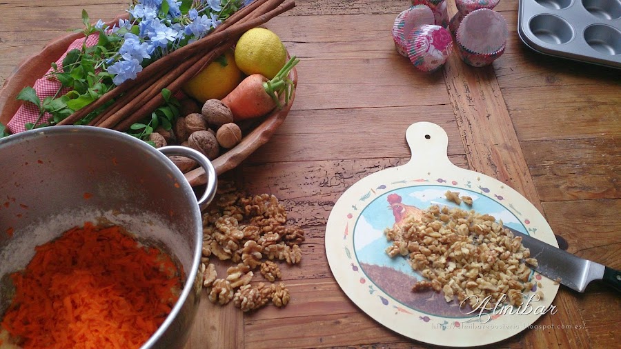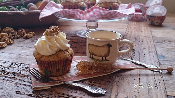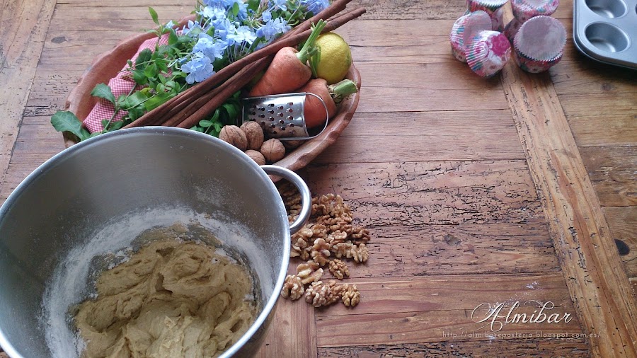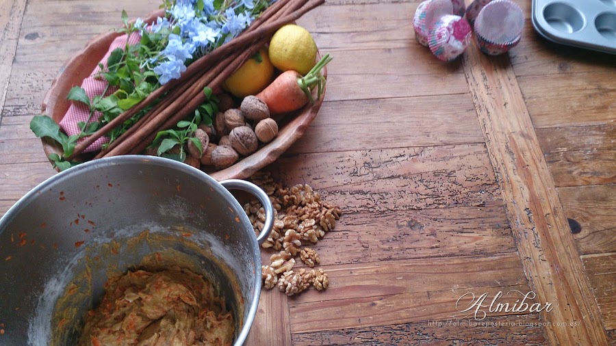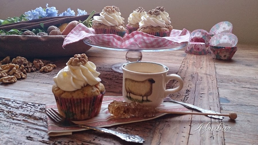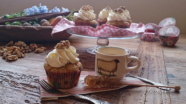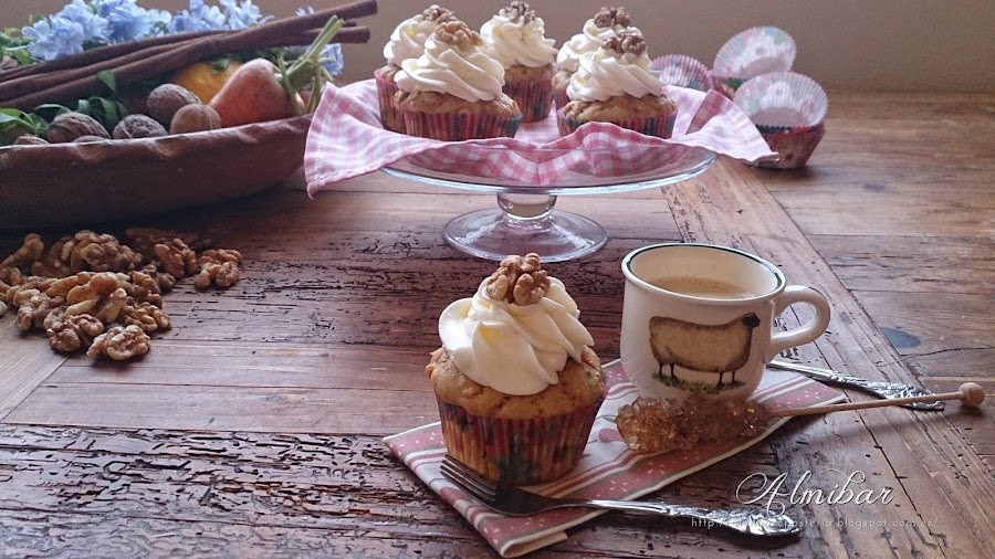 ...deliciosos cupcakes con sabor a zanahoria y nueces troceadas...