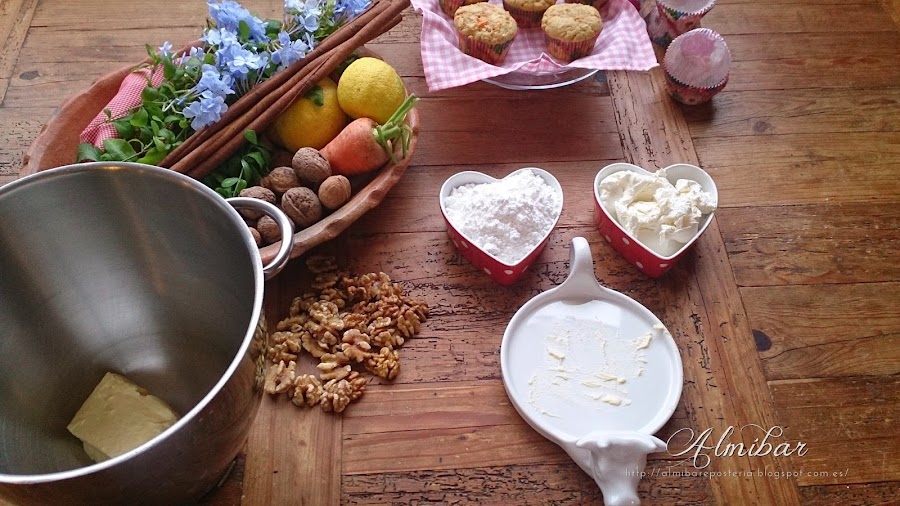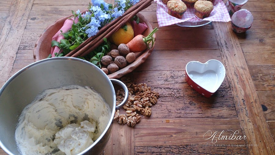 ...mientras preparas una crema suave para acompañar estos cupcakes de zanahoria...