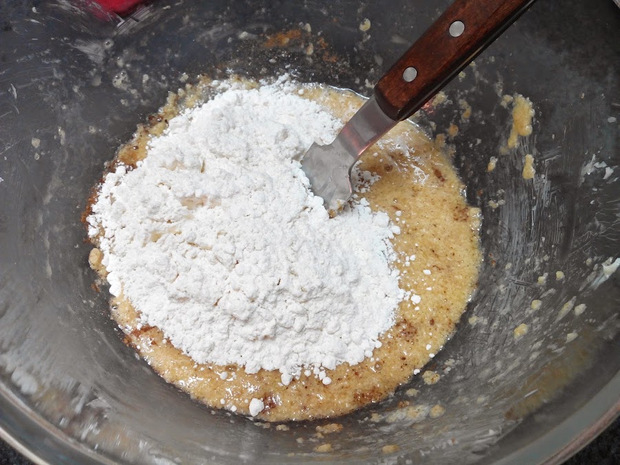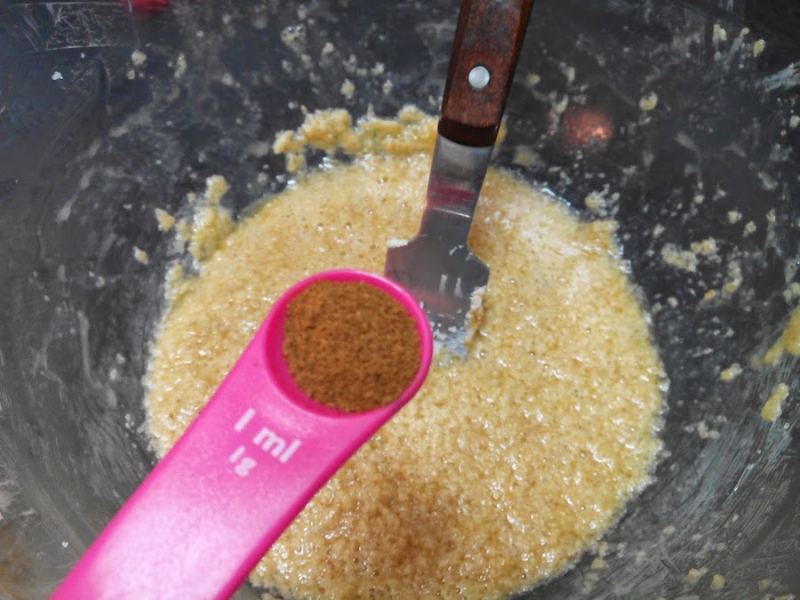 Después mezclamos la canela con la harina y la levadura, esto lo echamos a la mezcla anterior y mezclamos hasta que esté todo bien integrado.