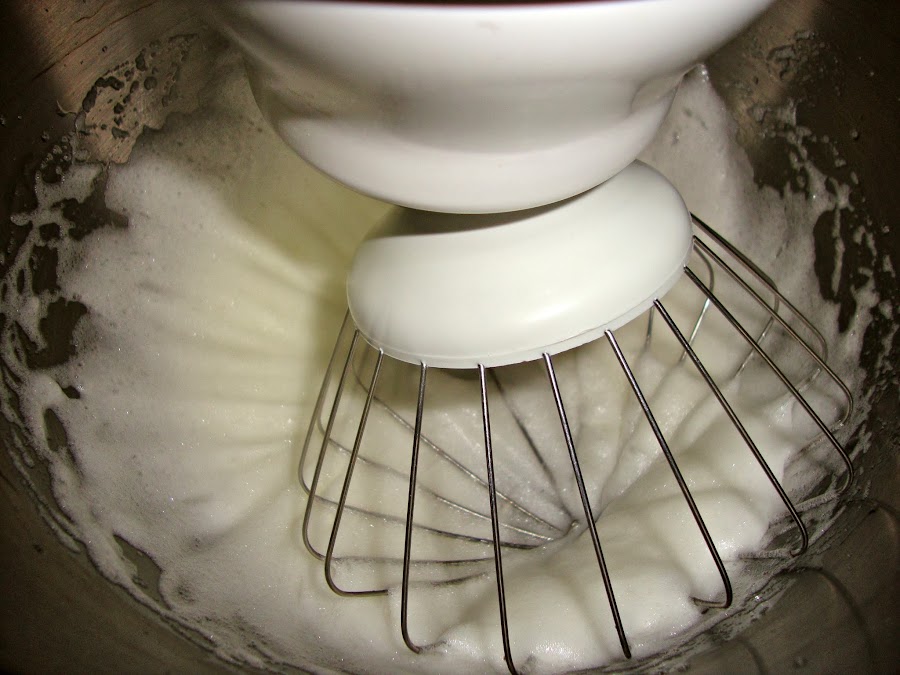En un bol ponemos las claras con una pizca de sal y las batimos a punto de nieve.