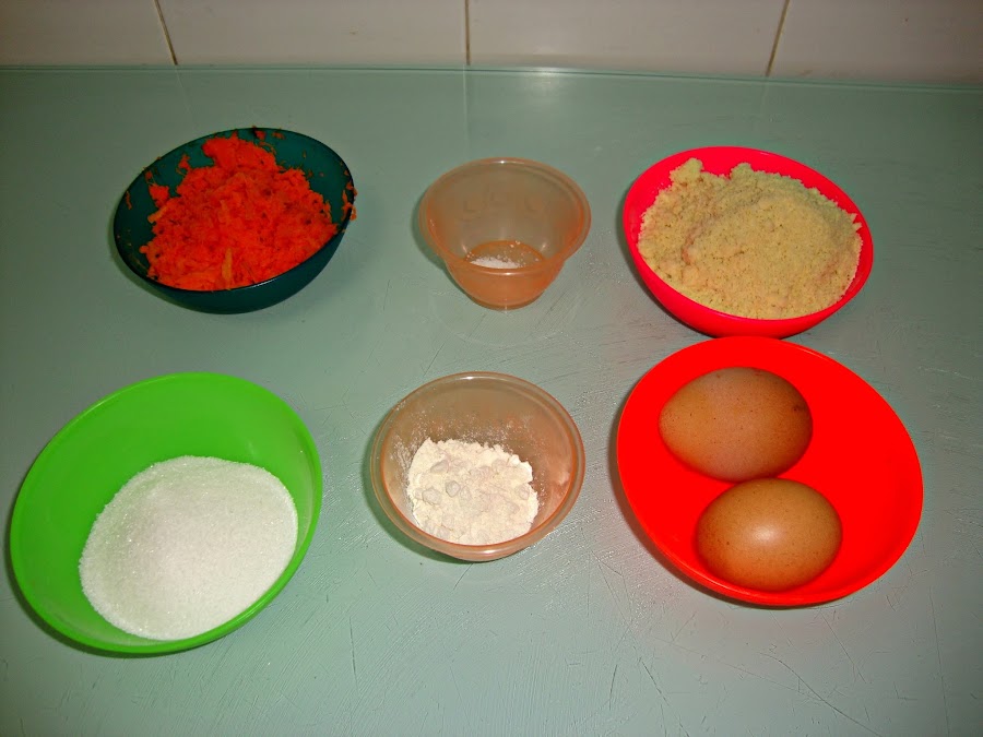 Posteriormente se le espolvorea la harina y la almendra y finalmente la zanahoria rallada.