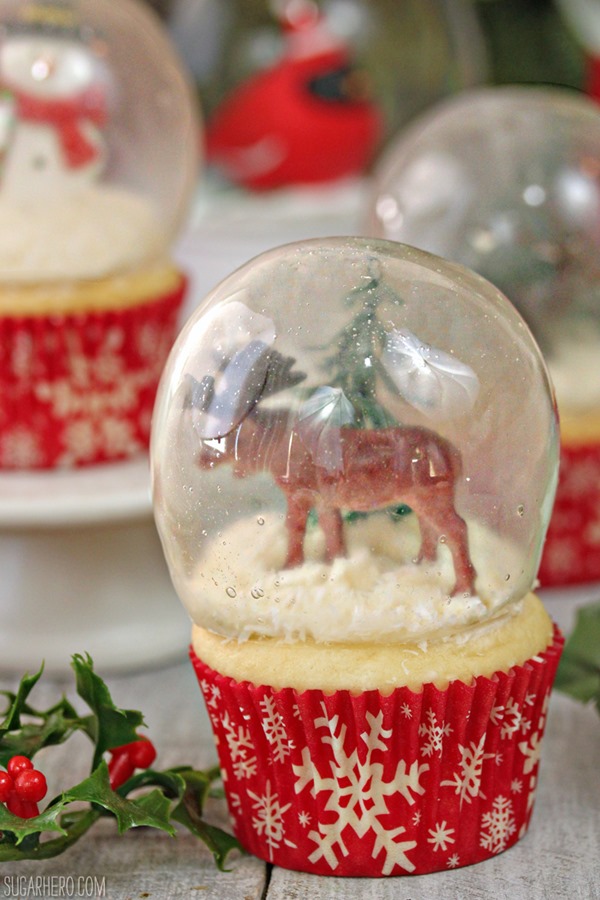 Buscando recetas en internet chulas para dulces navideños, me he encontrado con una artista en repostería y he cogido prestado su maravillosa receta de su blog SugarHero, donde hace unos cupcakes inspirados en los globos de nieve.