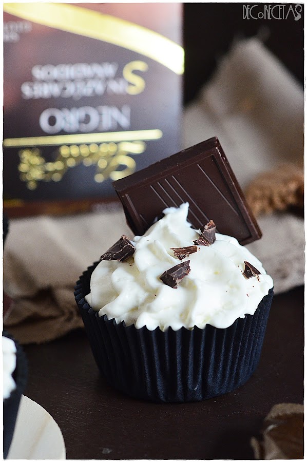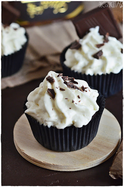 Los ingredientes y la manera de realizarlos son los mismos que para la tarta, pero para cupcakes y claro, el tiempo de horneado varía a 20minutos. También varié el que en vez de añadir cacao en polvo, rallé chocolate negro puro Lindt que recibí este mes