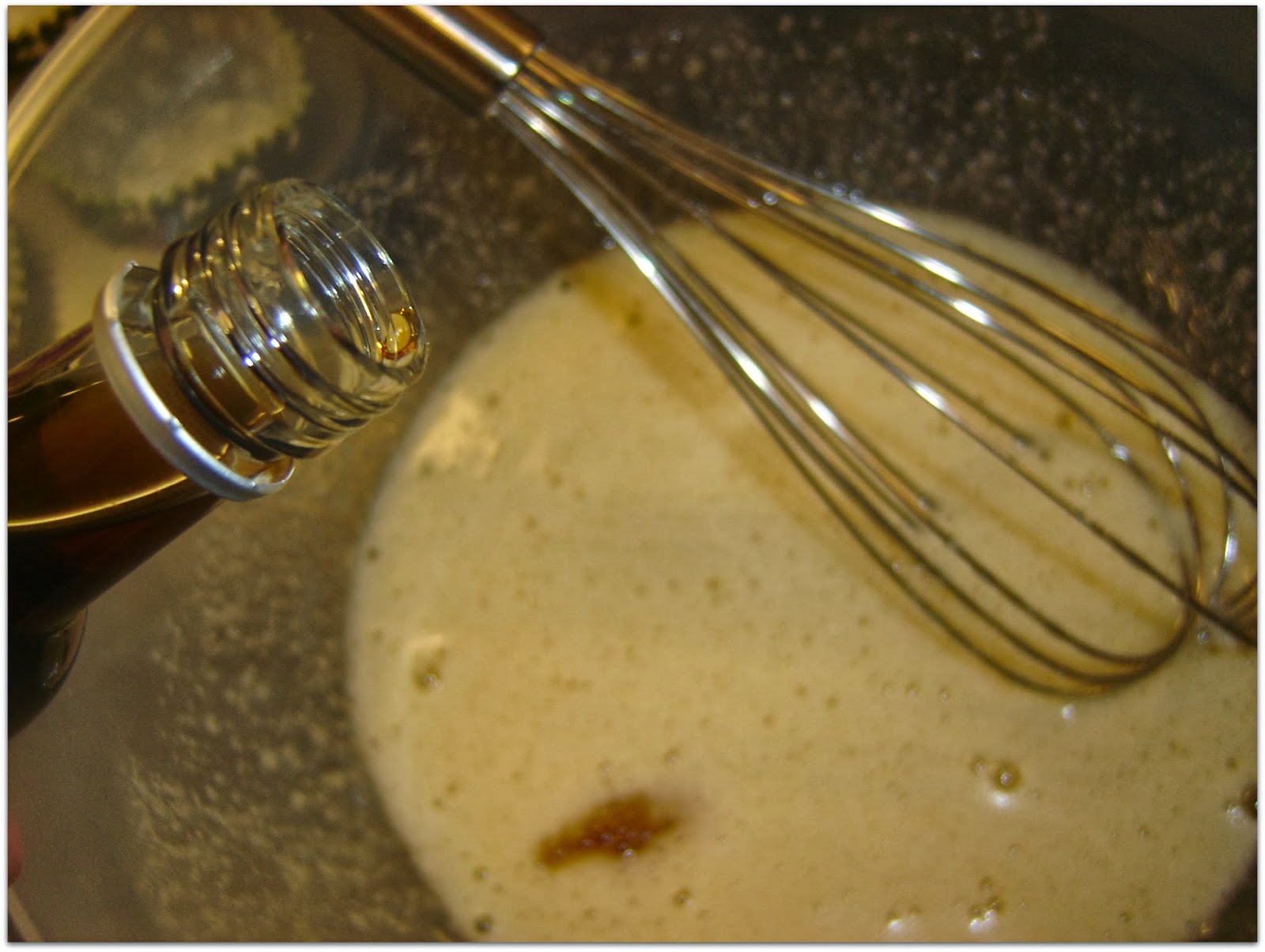 A continuación vamos batiendo en un bol los huevos con el azúcar hasta que espumee. Agregamos una cucharadita de esencia de vainilla para que le un toque de sabor mmmm.
