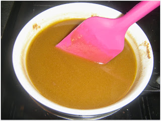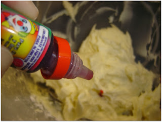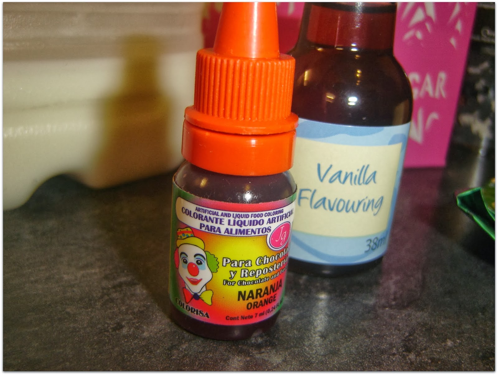 A continuación, agregamos dos gotas de colorante y vamos viendo cómo se nos va tiñendo la crema color calabaza. ^^