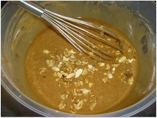 Una vez mezclado le añadimos el chocolate y la mantequilla. Agregamos los frutos secos.