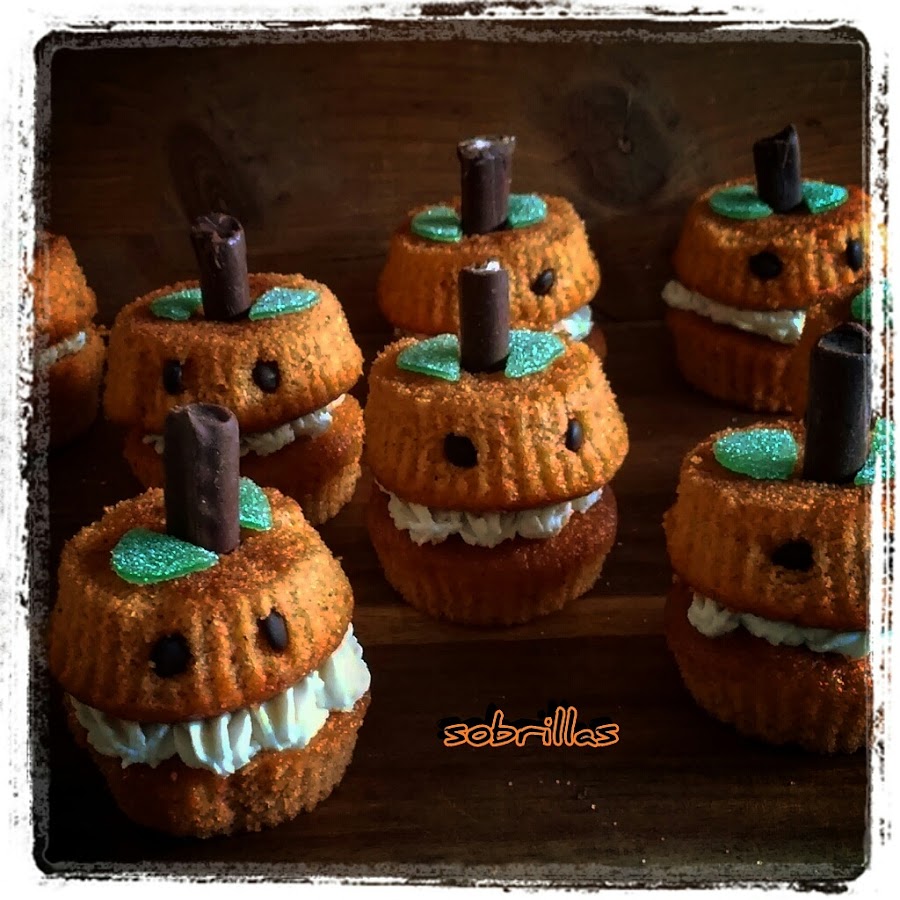 Hoy os traigo un batiburrillo de varios dulces de tradición Halloween. Por un lado la calabaza como ingrediente principal . Está acompañada de chuches a modo de decoración y rellena de crema de queso.