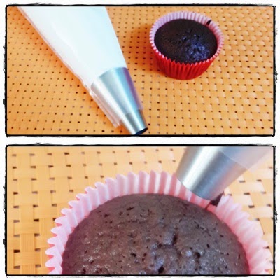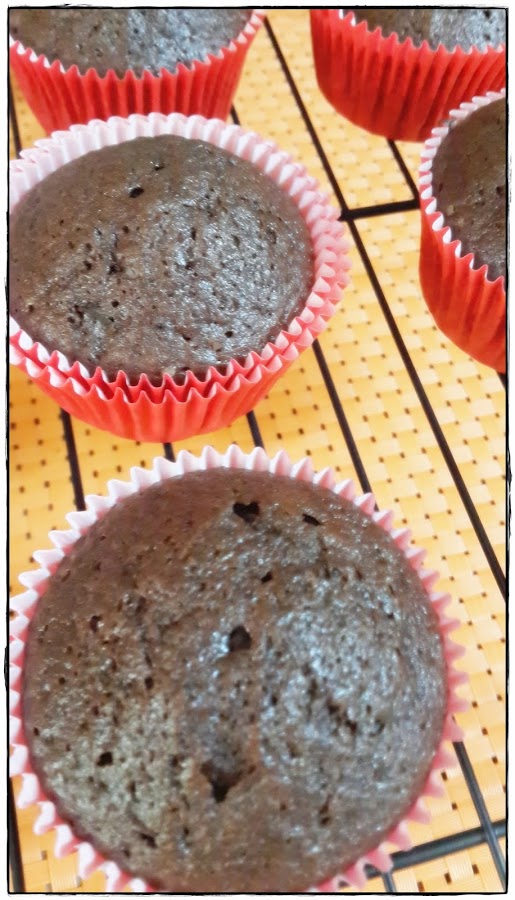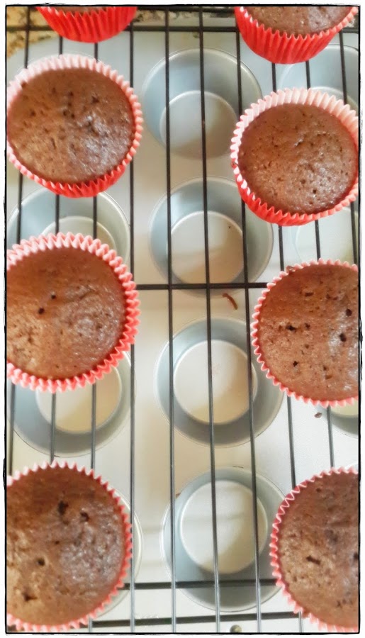 Truquillo: Una vez están hechos, apagar el horno y dejar los cupcakes dentro del horno unos 5 minutos, después abrir un poco la puerta del horno y esperar otro ratito y al final sacarlos del horno y ponerlos en la rejilla para enfriar. Si lo hacéis así al no sacarlos inmediatamente del horno, no los cambiáis de temperatura bruscamente, se quedaran mejor pegaditas las capsulas y no se os bajaran tanto.
